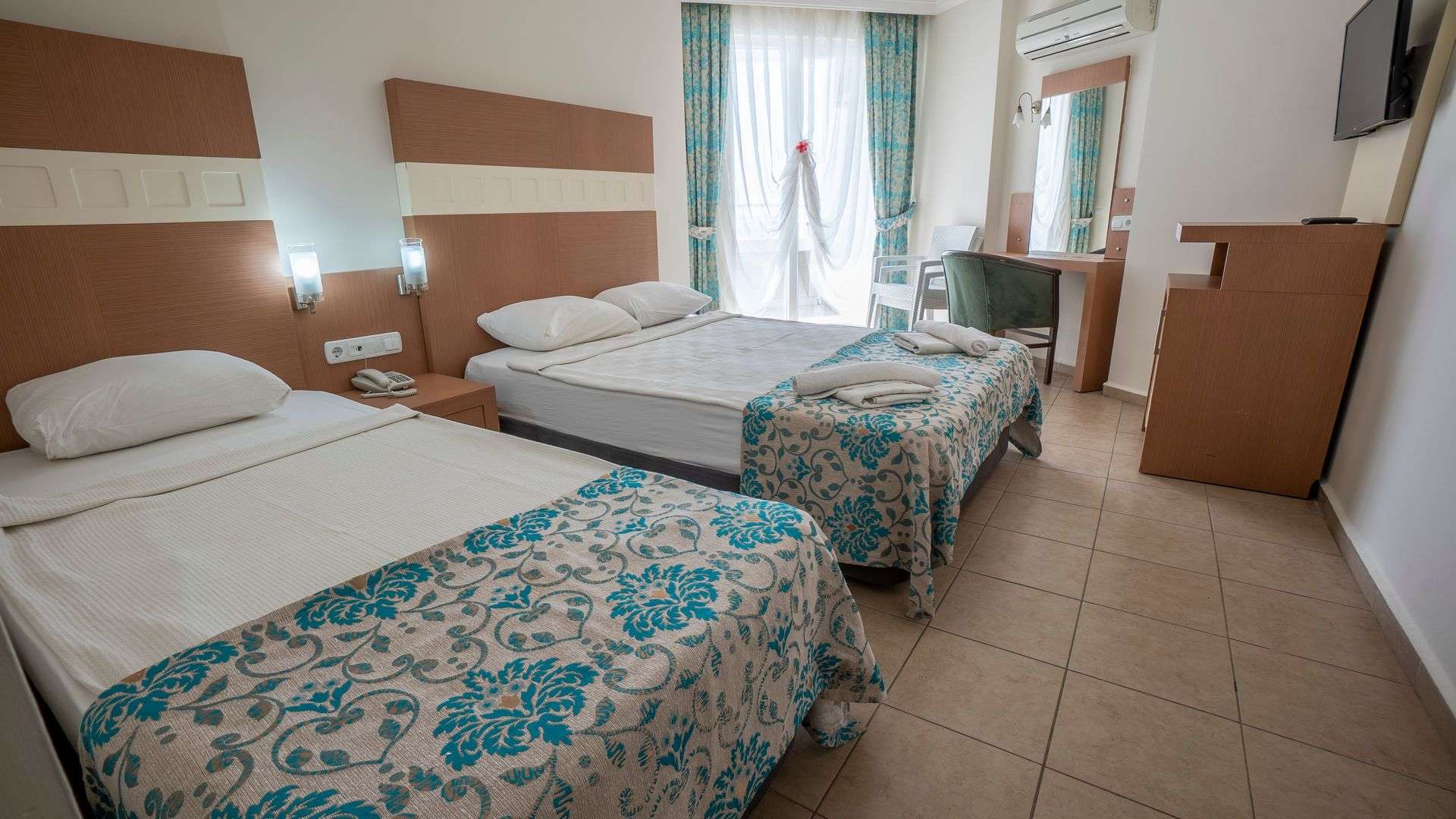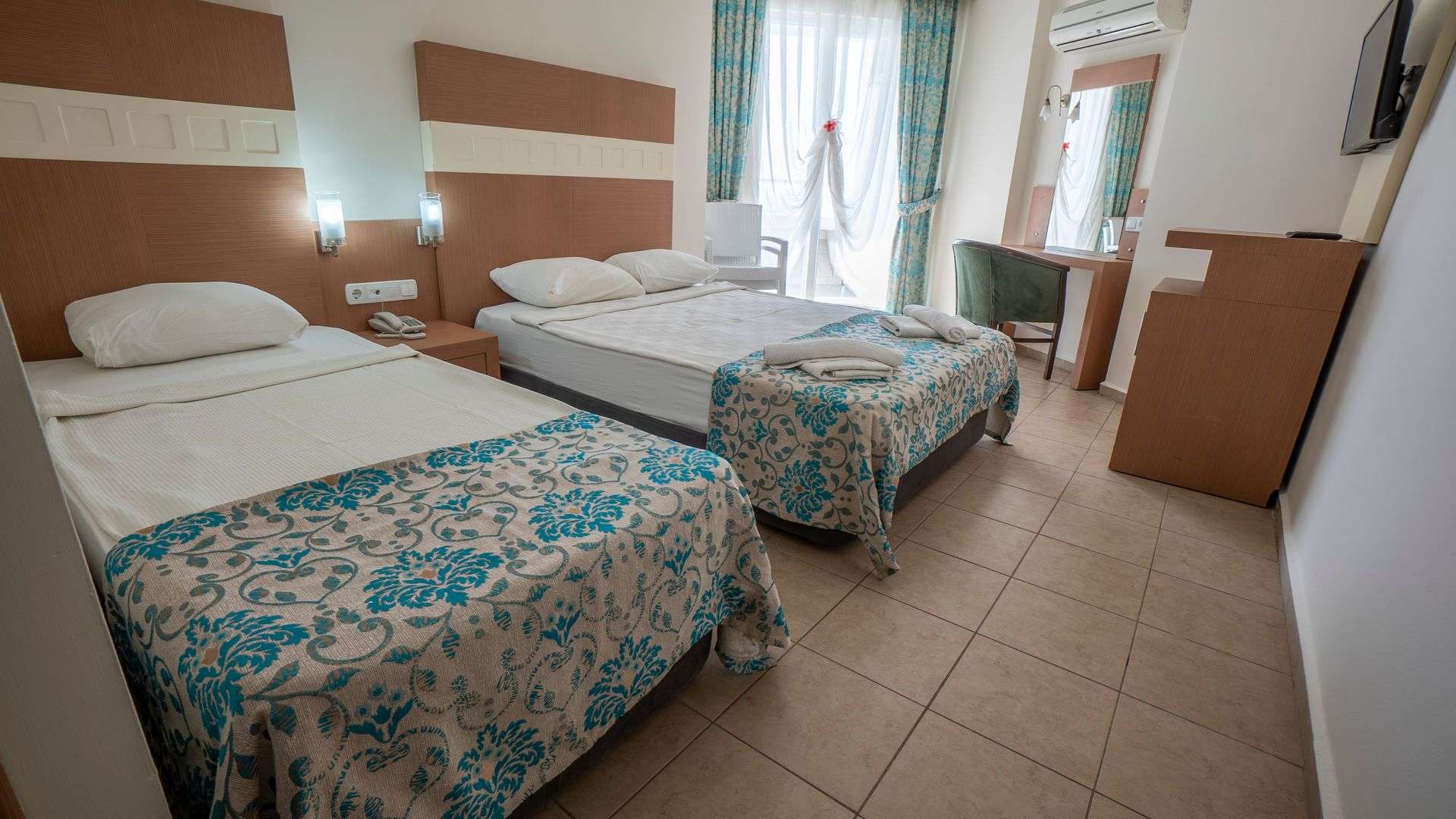 All rooms have one double and one single bed. All floors have the same type of room. Rooms are 22 m².